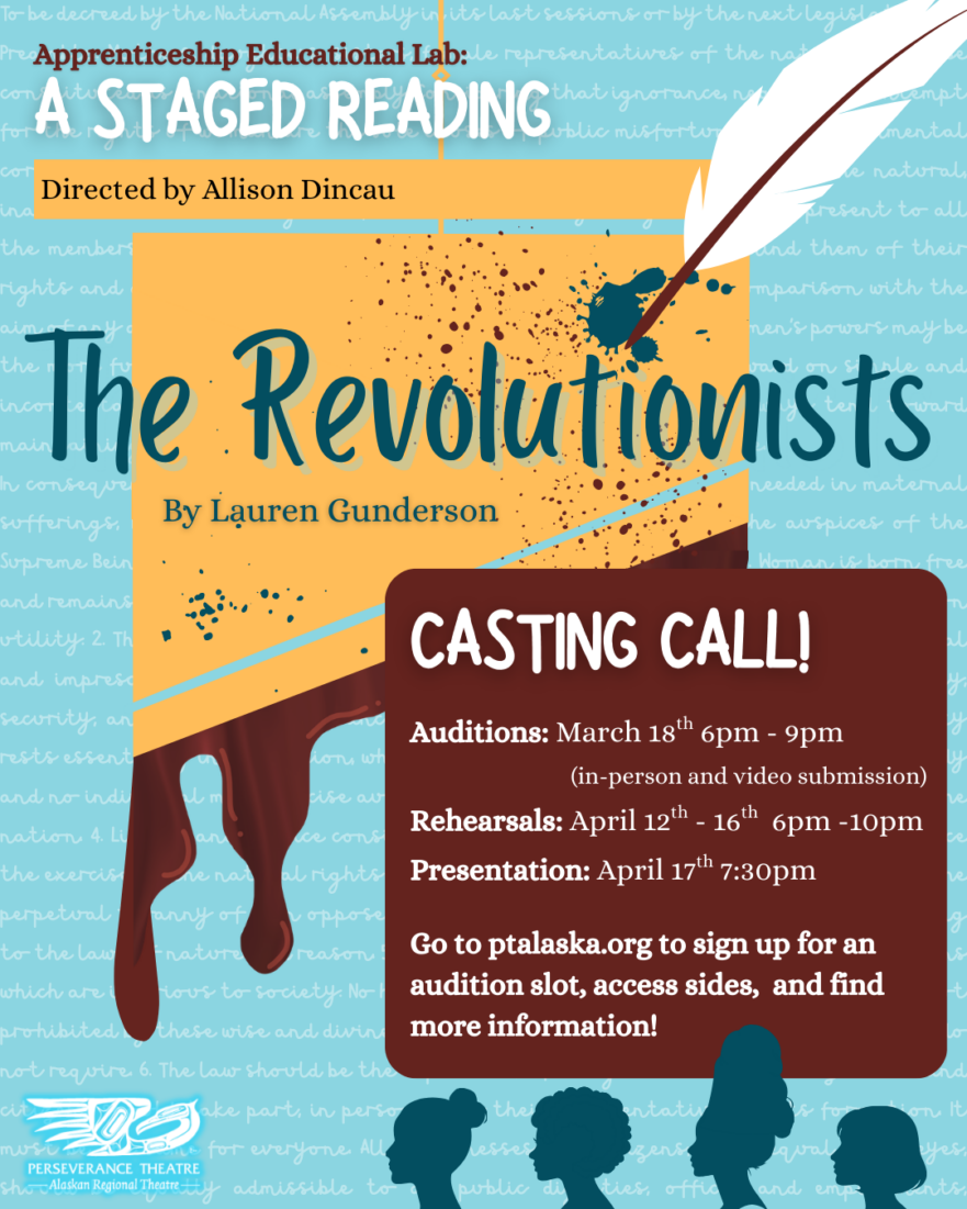 WHAT IS PT’S DIRECTOR’S LAB? An educational program to develop the talent pool of early-career directors. Participants will be guided by an established Director in the theatrical field who will challenge them creatively to grow, as well as equip these artists with the necessary tools to succeed in today’s field as directors at Perseverance Theatre and beyond. Participants will cover …